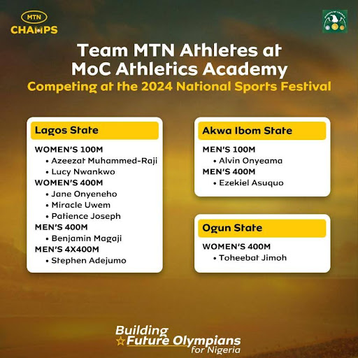Ten outstanding athletes from the MTN CHAMPS athletics competition are participating in the National Sports Festival, taking place in Ogun State from May 16 to 30.