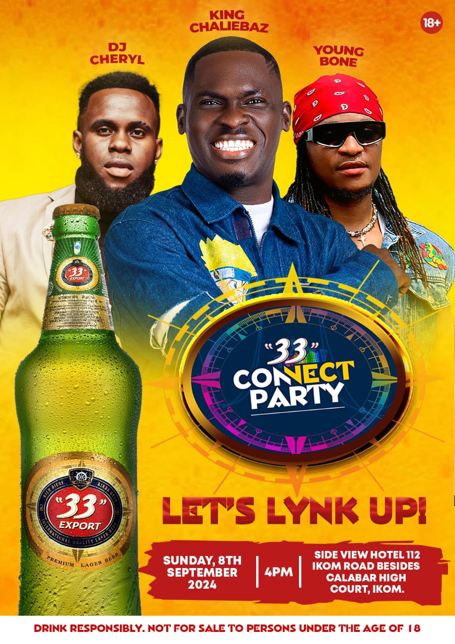 Get ready, Ikom ! The “33” Connect Party is coming to town, and it’s set to be the event of the season. Mark your calendars for Sunday, September 8, 2024, as Side View hotel, Ikom in Calabar transforms into a hub of friendship, laughter, and vibrant energy. “33” Export Beer, is well-known as a brand that cherishes the bonds of friendship and therefore invites you to join this exciting gathering designed to celebrate connection and community.