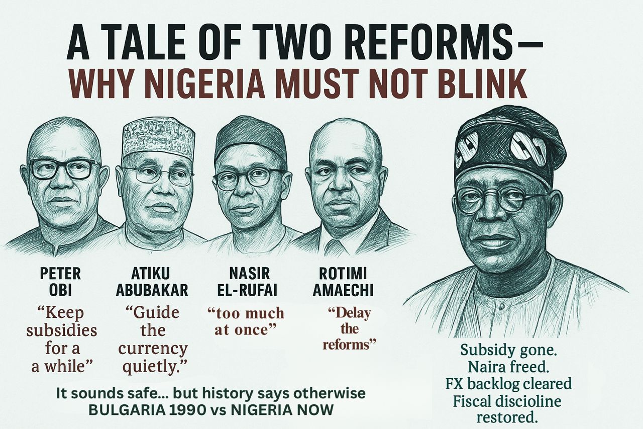 When Bulgaria began its transition from communism in 1990, its leaders were afraid of the shock that rapid liberalisation might cause. They freed some prices but kept politically sensitive subsidies in place, just as Peter Obi proposes. The subsidies drained the treasury, fuelled inflation, and collapsed the currency. They maintained a soft peg for the lev without reserves to defend it, exactly as Atiku Abubakar suggests for the naira. The peg broke, reserves vanished, and hyperinflation soared above 2,000 percent. They warned against “too much at once,” echoing Rotimi Amaechi and Nasir El-Rufai, and delayed the restructuring of state enterprises. Six years later, pensions were worthless, shops were empty, and the reforms they feared were forced on them in far harsher form.