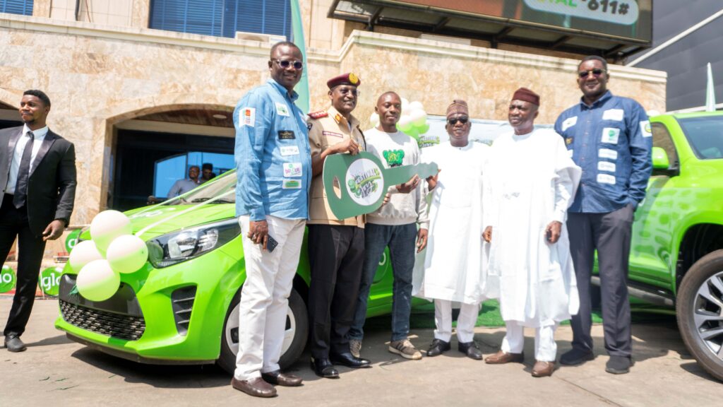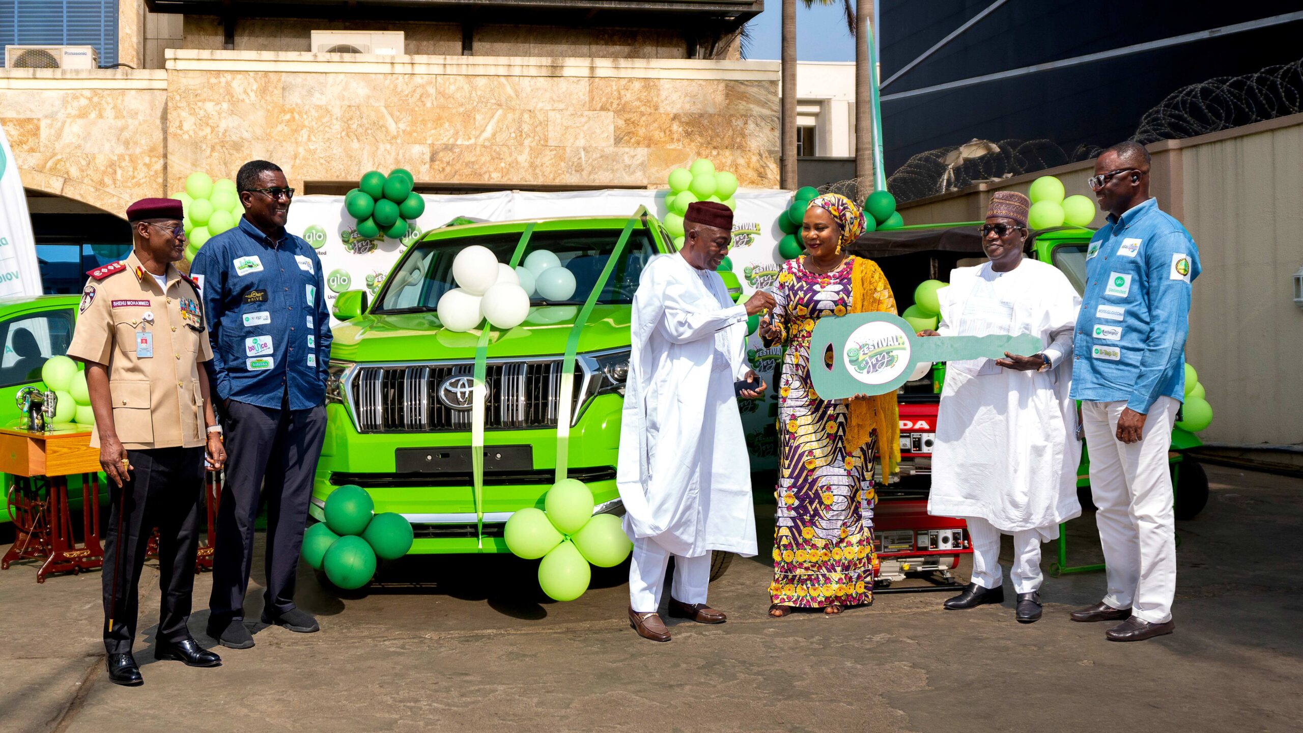 Sarah Ilya Madu, a federal civil servant in Abuja, received the keys to her brand-new Prado SUV from the special guests, Senator Simon Lalong and Senator Yemi Adaramodu, Chairman of the Senate Committee on Youth Development, who were supported by Glo celebrity influencers.