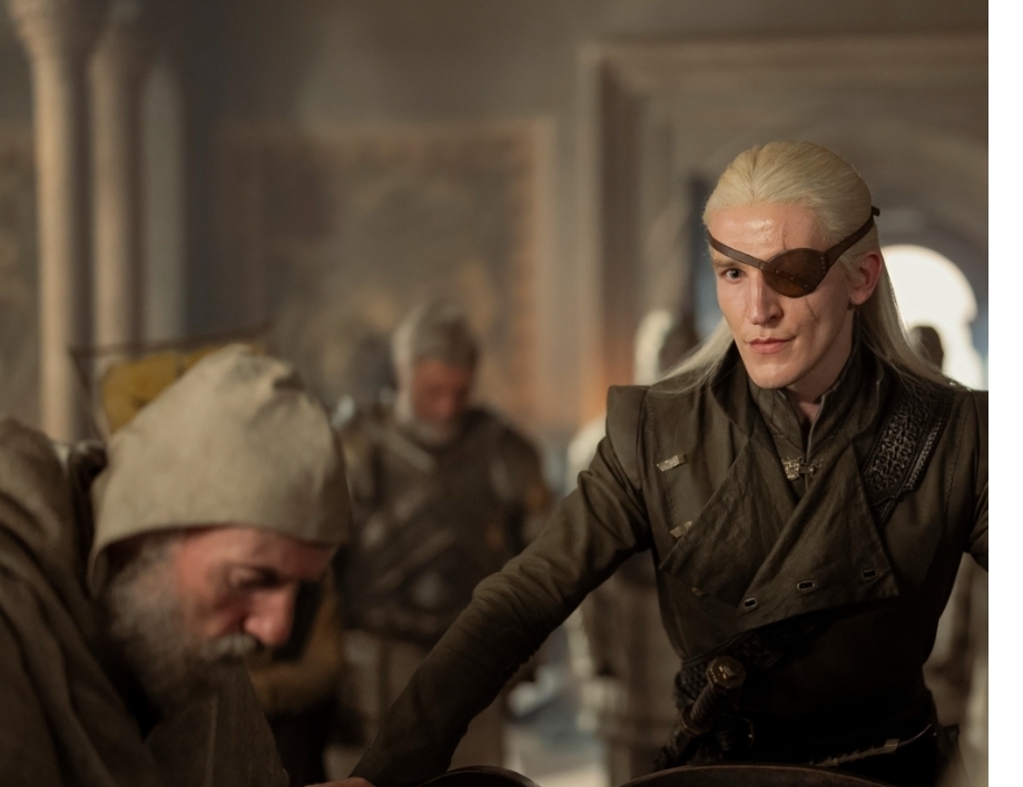 Ser Criston Cole (Fabien Frankel) remains tight-lipped about Aemond’s (Ewan Mitchell) attempt on his brother’s life, offering only ambiguous responses to Alicent’s inquiries. Consequently, Aemond is elevated to power, shutting out Alicent and appointing himself ruler with the council’s reluctant approval. His first decree? Lockdown King’s Landing, turning the city into a prison, enraging the populace further.