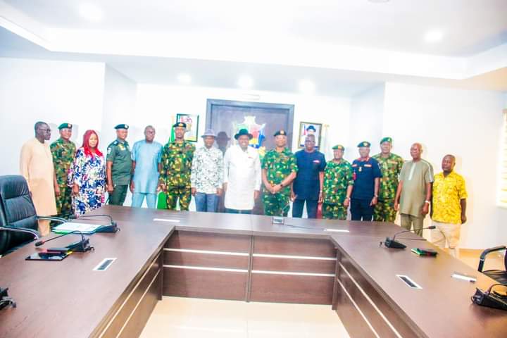 Governor of Bayelsa State, Senator Douye Diri today received the Defence Headquarters Joint Monitoring Team on Crude Oil theft and pipeline vandalism at Government House, Yenagoa.
