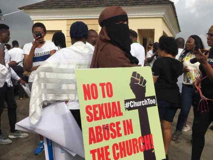 After massive awareness creation for protest to be made against Fatoyinbo to step down as COZA lead pastor and be prosecuted for rape, protesters in large numbers today stormed the ministry’s headquarter in Guzape neighborhood of Abuja, and other places including the branch in Lagos state.