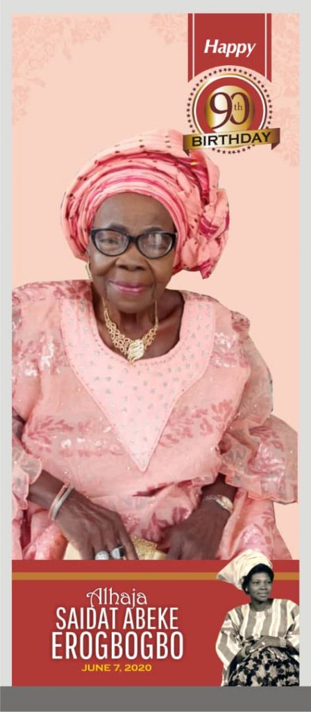 President Muhammadu Buhari offered his own rounds of congratulatory salutations to Alhaja Sadiat Abeke Erogbogbo, the renowned and well-regarded retired schoolteacher and businesswoman. At her 90th Birthday on June 7, 2020, the President is among a multitude of well-wishers happy to publish their bit about the matriarch, and congratulate her children, grandchildren and great-grandchildren on the fortune of being related to—and instructed by—Mama Erogbogbo.