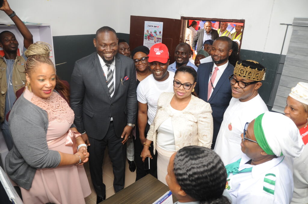 Dr. T. Balogun (Director, Planning, Research and Statistics, PHC Board, Lagos State); Hon. (Princess) Olabisi Adebayo (Chairperson, Mosan LCDA, Alimosho); Dr. Ubon Udoh, MD/CEO, ASR Africa, Omosalewa Oyelaran, Deputy Director, HIV&TB Office, USAID Nigeria, and Dr. Anyike Chukwuma (Director, Public Health, Federal Ministry of Health) during the official handover of the Directly-Observed Treatment Short-course (DOTS) Centre at Akinyele PHC, Mosan LCDA, Alimosho, Lagos State.