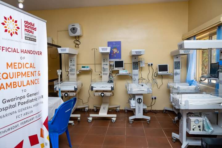 The Abdul Samad Rabiu Africa Initiative (ASR Africa) – brainchild of Industrialist, philanthropist and founder of BUA Group, Abdul Samad Rabiu, has formally handed 85 modern medical equipment to the Paediatric department of the Gwarimpa General Hospital in complete fulfilment of the ASR Africa Health Systems Support grant awarded to the hospital in 2021. The scope of the grant included a fully equipped neonatal unit, equipment for 3 operating rooms, hospital ward monitors and beds as well as an ambulance.