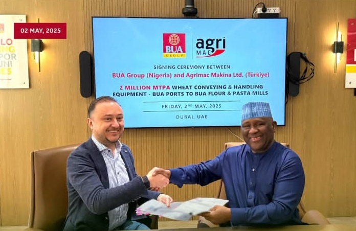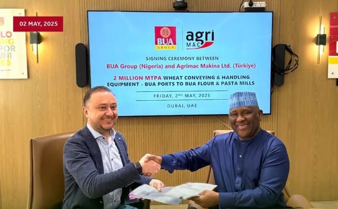 The deal, signed on Friday, May 2, 2025, was for construction of a two million Metric Tonnes Per Annum Wheat Conveying and Handling equipment for BUA Flour and Pasta Mills.