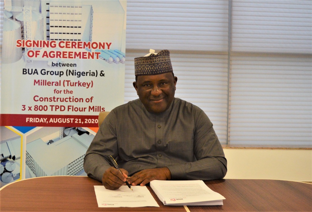 Nigeria’s leading foods and manufacturing conglomerate, BUA has today sealed an agreement with Milleral of Turkey to build its newest flour milling plants in Nigeria with a total milling capacity of 2,400tons per day (3 x 800tpd). Upon completion in 2021, this will bring BUA’s total installed flour milling capacity to 4000tons per day. BUA currently operates an installed flour milling capacity of 1,600 tons per day and 5 lines of pasta of 720 tons per day.