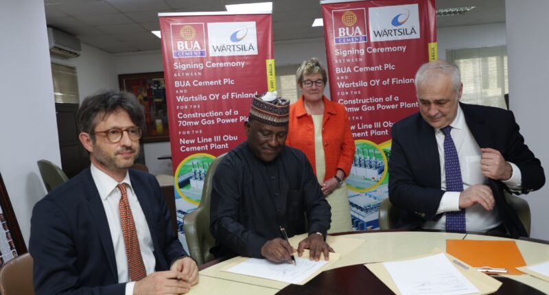 BUA has signed yet another agreement with Wartsila OY of Finland for the construction of a 70megawatts dual-fuel power plant for its BUA Cement Obu Line 3 project in Edo State, Southern Nigeria. This agreement was signed between both companies at a ceremony in Abuja presided over by the Deputy Minister for International Trade for Finland, Ms. Nina Vaskunlahti. This gas power plant will also be the third power plant to be commissioned by BUA from Wartsila as BUA Cement seeks to increase its total production capacity across all its locations to 17million metric tonnes by 2023.