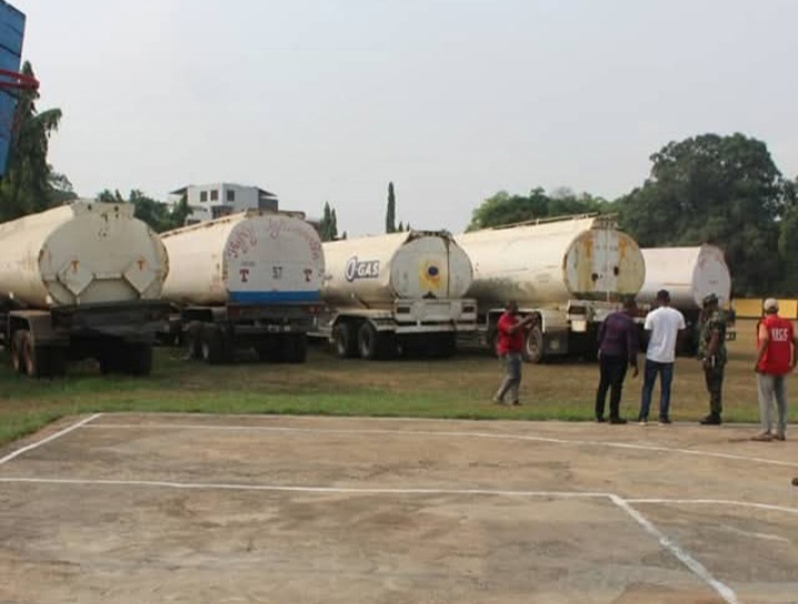 Major D.R. Okoh , who represented the Commander, Headquarter 4 Brigade, Nigerian Army at the handing over in Benin stated that the six trucks conveying 45,000 litres each of suspected illegal petroleum products were intercepted by troops of 4 Brigade Operation Wabaizigan at Upper Sakponba and Ologbo, along Benin Sapele Road, Benin City. According to him, preliminary investigations showed that though they had approval to evacuate waste condensate oil, the trucks were arrested with products suspected to be condensate instead of condensate waste.