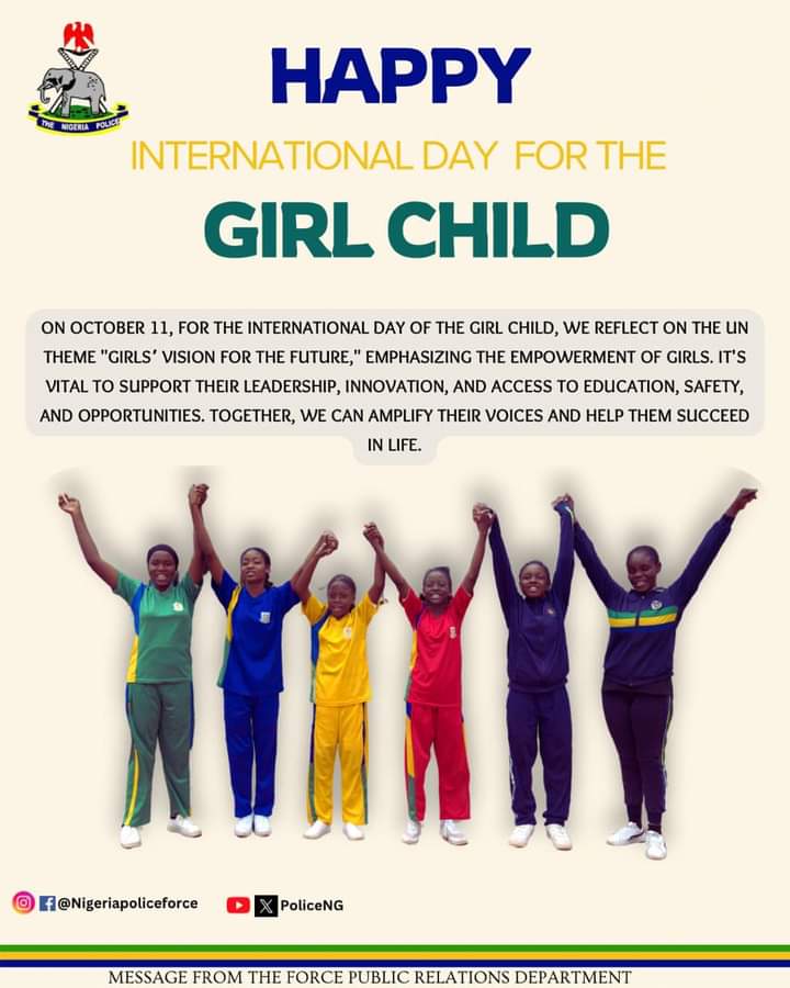 The International Day of the Girl Child serves as a powerful reminder of the ongoing struggle for gender equality. The Nigeria Police Force reaffirms its commitment to the protection of girls’ rights and continues to make significant efforts to protect and empower young girls to ensure that the girl child can grow in a safe environment, free from violence and exploitation.