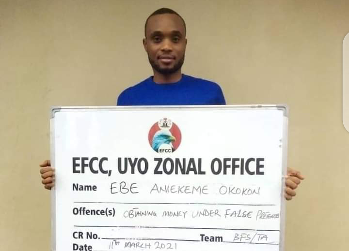 The Uyo Zonal Office of the Economic and Financial Crimes Commission EFCC, on Thursday, March 11, 2021 secured the conviction and sentencing of one Ebe Aniekeme Okokon, before Justice Archibong Archibong of the State High Court sitting in Uyo, Akwa Ibom State.