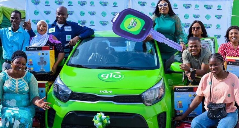 The first car winner in the on-going Festival of Joy loyalty reward promo by Globacom received the key to a brand new Kia car in Ibadan on Thursday, November 17, 2022.