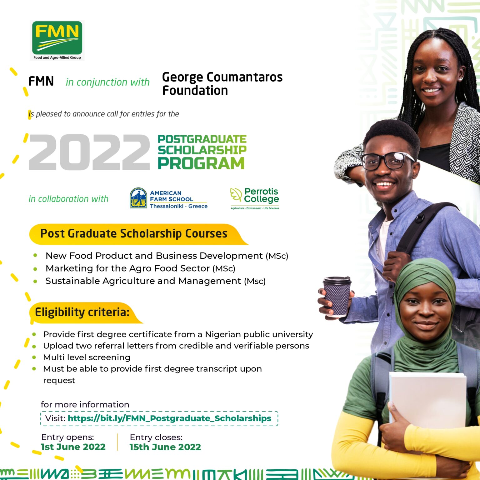 Nigeria’s market leader within the food and agro-allied sector and Provider of quality products, Flour Mills of Nigeria Plc (FMN), today announces a partnership with the George Coumantaros Foundation to award postgraduate degree scholarships to Nigerians in collaboration with American Farm School (AFS) and Perrotis College.