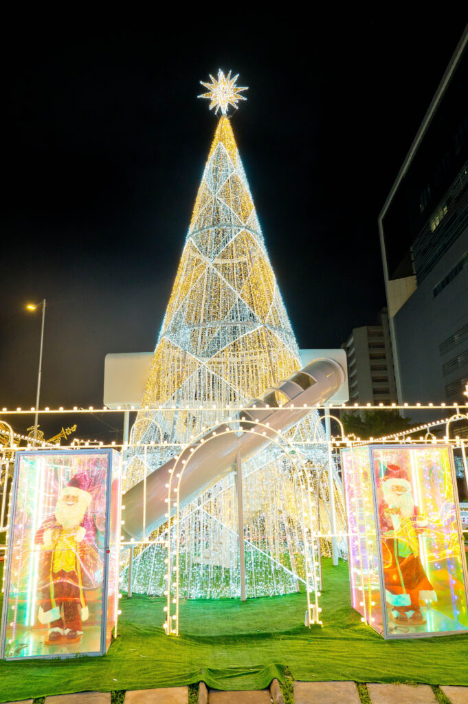 This year’s decorations, crafted by Quantum Markets, continued the bank’s reputation for breathtaking artistry. Shimmering arches, towering installations, glittering motifs and a wide spectrum of colours illuminated the night, earning admiration from the large crowd gathered for the unveiling.