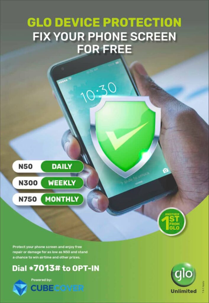 Subscribers who wish to enjoy the service should dial *7013*1# to enroll via USSD. They will then select a preferred daily, weekly, or monthly package. Payments are debited directly from customers’ Glo airtime. After payment, a link will be sent for a quick screen integrity test. After passing the test, the device’s IMEI is registered with Cubecover, thus securing coverage.