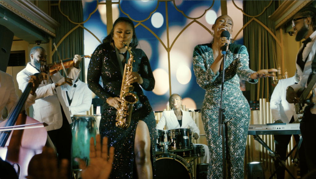 Before the party celebration where King Sunny and his band entertain guests, the TVC takes viewers back to the 1970s and 1980s when Christmas was celebrated with so much fanfare. It paints a vivid picture of rural Nigeria during Christmas where the warmth of tradition and community fills the air. The village with lush green vegetation is buzzing with excitement, with children playing, women cooking delicious meals in open-air kitchens, the aroma of local dishes (you can literally perceive it) mixing with the sounds of Afro Juju music. Families and friends gather around, dancing joyfully to the rhythmic beats, their faces beaming with happiness as they celebrate the festive season. A woman bearing the Aso ebi for the party is shown coming down from a Peugeot 504 car which also reinforces the advert as being set in the 1980s.