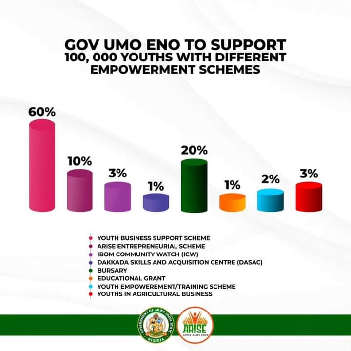 Governor Umo Eno has presented a new charter of empowerment for one hundred thousand (100,000) youths across the 31 Local Government Areas of the State beginning from October 2024.
