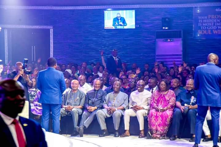 Rivers State Governor, Sir Siminalayi Fubara, on Monday, attended the 62nd birthday church thanksgiving celebrations of the Founder and Presiding Pastor of Salvation Ministries, Pastor David Ibiyeomie.