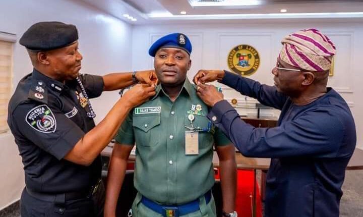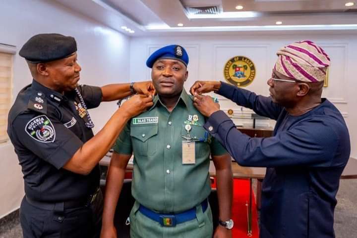 Lagos State Governor, Mr Babajide Sanwo-Olu has decorated his Aide-De-Camp (ADC), Silas Tsado with his new rank of Superintendent of Police.