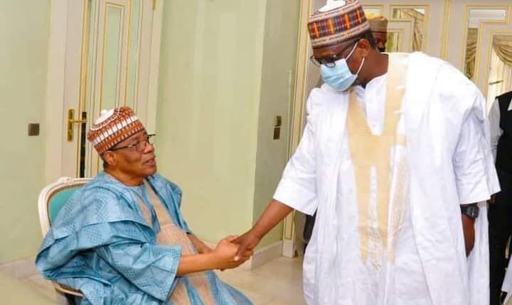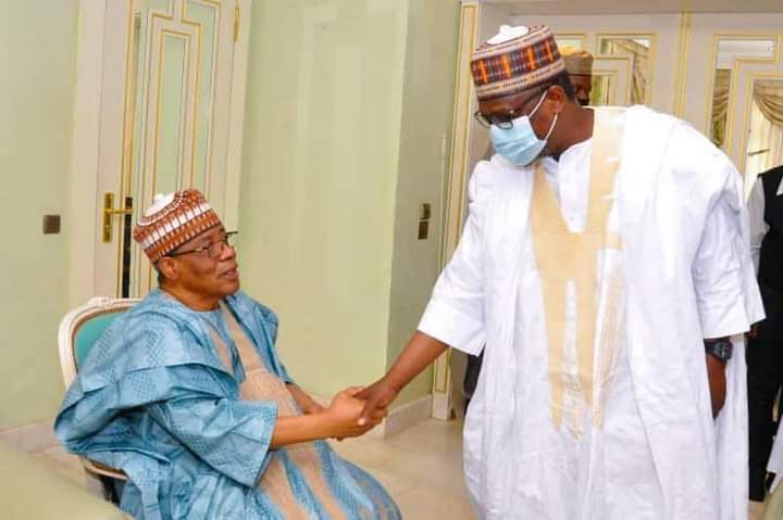 Niger State Governor and Chairman North Central States Governors’ Forum (NCSGF), Alhaji Abubakar Sani Bello congratulates the former Military President, General Ibrahim Badamasi Babangida as he turns 81.