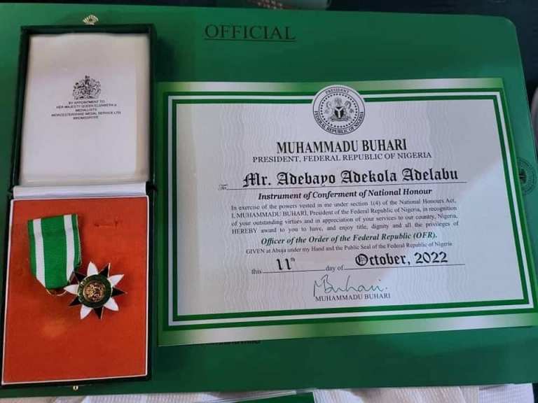 I’m indeed elated and proud to receive this honour as Officer of the Order of the Federal Republic (OFR). This is a new beginning of greater things to come in the discharge of service to our dear country,” Mr. Adelabu gladly wrote on the development.