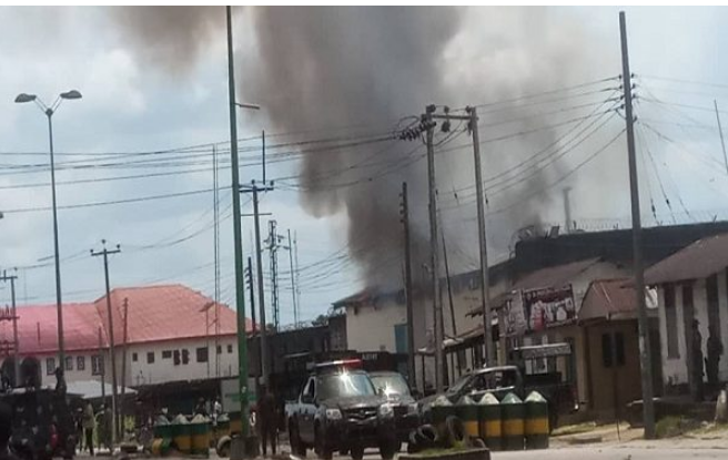 Flames and thick smoke are also emanating from the premises, fuelling fear among residents, most of whom have locked shops and scampered for safety.