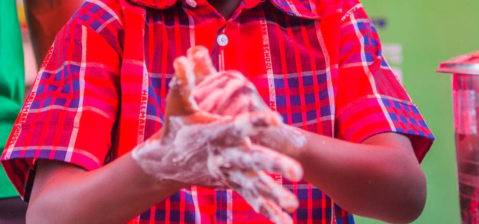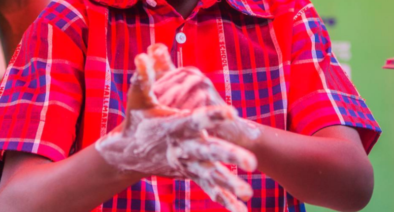 A student learning how to wash her hands in Lagos, Nigeria / ©Dettol