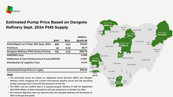 The NNPC Ltd. has released estimated prices of Premium Motor Spirit (PMS), also known as Petrol (obtained from the Dangote Refinery) in its retail stations across the country.