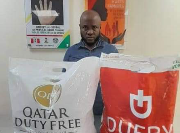 The suspect was arrested at the D arrival hall of the MMIA during inward clearance of passengers from Sao Paulo, Brazil via Doha on Qatar Airways on Monday, 25th December 2022 following credible intelligence.