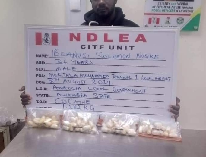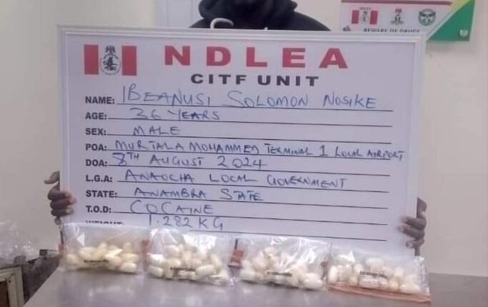 An Onitsha, Anambra state based-businessman, Ibeanusi Solomon Nosike, has excreted 68 wraps of cocaine after 12 days of excretion observation following his arrest at the local wing of the Murtala Muhammed International Airport, MMIA Ikeja Lagos by operatives of the National Drug Law Enforcement Agency, NDLEA.