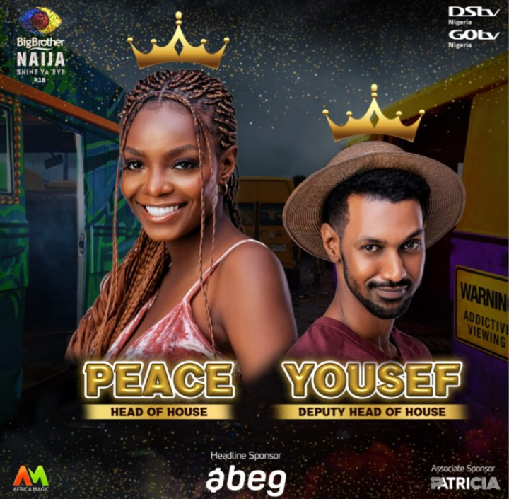 It was a close tie between Maria and Peace, with Maria getting 15 steps and Peace getting 16. After all the obstacles, Peace emerged as the first head of house of the season. And as instructed by biggie, had to pick a deputy of the opposite sex in less than a minute. She picked Yousef.