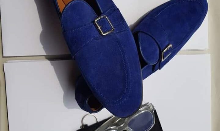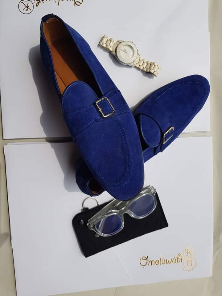 *NB: the accompanying pictures parade a blue 3-piece linen kaftan set, blue nubuck loafers with decorative buckles, a watch and reading glasses.