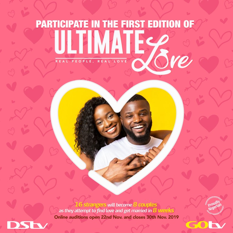 Online auditions open Friday, 22 November and will run for one week till Saturday, 30 November 2019. All intending participants are to log on to www.africamagic.tv/ultimatelove to fill out the registration form and upload a one-minute video of yourself and why you deserve ultimate love. Ultimate Love is open to Nigerian males and females aged 23 years and above, who are single and open to the adventure the show presents.