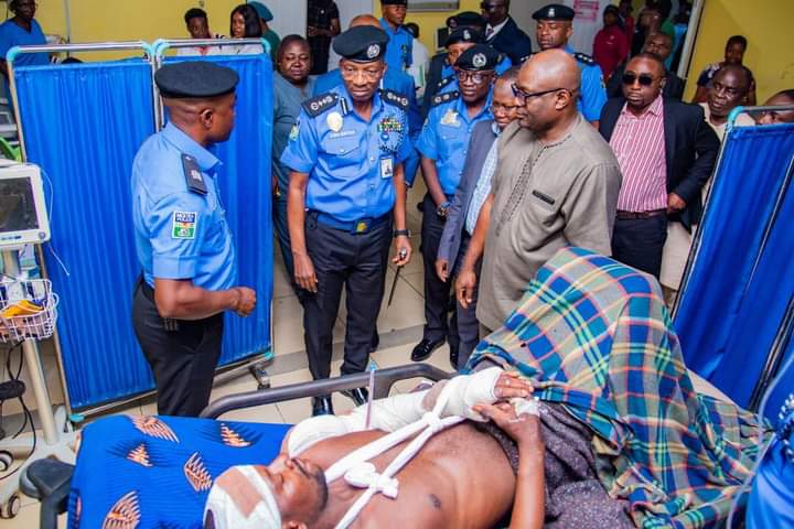 The Inspector General of Police, Ag. IGP Kayode Adeolu Egbetokun, NPM, Ph.D., on Thursday 28th September, 2023, visited the National Trauma Centre, National Hospital, today to personally assess the condition of a Police Inspector, Omeje Matthew, who was brutally attacked and macheted by armed hoodlums at his residence in Kabusa, Abuja.