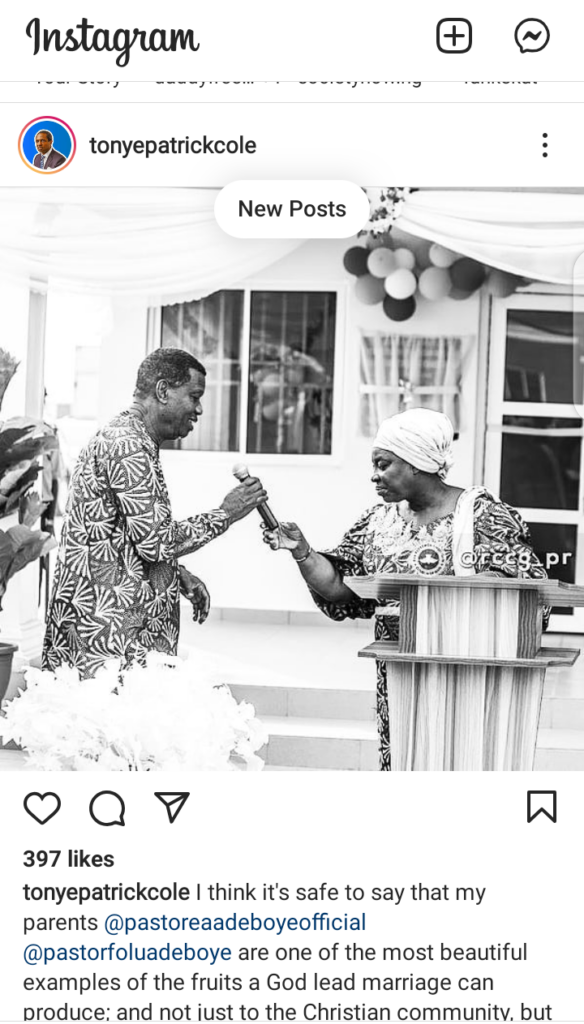 The co-founder of Sahara Group, who is also a pastor in the RCCG, wrote, “I think it’s safe to say that my parents @pastoreaadeboyeofficial @pastorfoluadeboye are one of the most beautiful examples of the fruits a God lead marriage can produce; and not just to the Christian community, but to people all over the world.