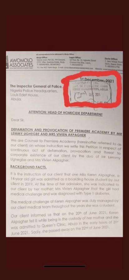 Nearly six months ago, Premiere Academy entered media spotlight when news broke that one of its students, Karen Happuch Akpagher, had died in a hospital in Abuja. The news of the death of the 14-year old diabetics’ patient which occurred on 22nd June, 2021 soon became a hot issue as several media stories authoritatively claimed she was raped to death, sodomized and forced into an oath of secrecy to booth.