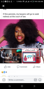 “With deep regret, I am making it public the case of how ‘Keystone Bank’ and their agency ‘Insight Communications’ have infringed on my copyright with regards to my song ‘So Amazing ft Cobhams’ @cobhamsasuquo which is used for Keystone Bank @keystonebankng campaign centered around ‘We Grow Together” distributed as advert / Commercial aired on CNN, Ebony Life TV, TVC and also as Facebook, Twitter and Instagram commercial (using my song – instrumental and my vocals) all without my consent.