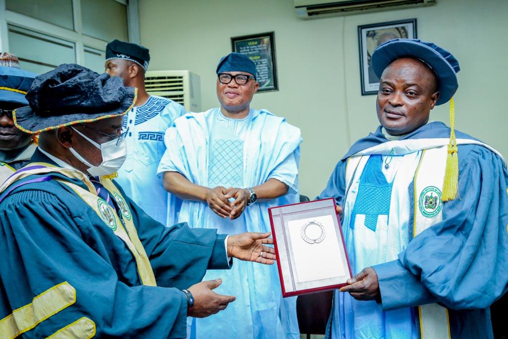 Top officials of the institute arrived the Assembly just before the resumption of plenary activities on Thursday after which the twin honours were bestowed on the Speaker, a statement by Eromosele Ebhomele, his Chief Press Secretary, said.