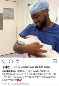 Apparently joyous Davido who is said to be with his beautiful wife at time of delivery actually took to his social media handle to announce the good news.