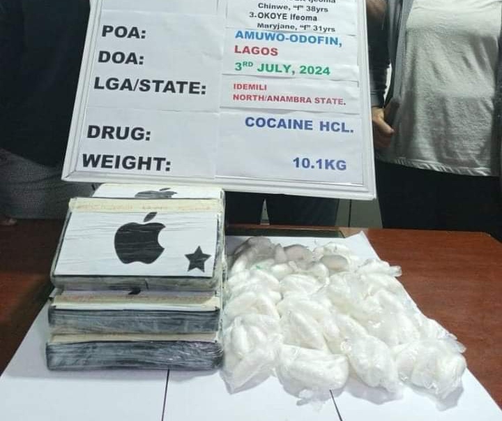 Operatives of the National Drug Law Enforcement Agency, NDLEA, have raided the Lagos base of a high-profile cocaine syndicate headed by a couple: Agbakoba John Mmadu, and Agbakoba Ijeoma Chinwe as well as their associate, Okoye Ifeoma Maryjane, where large consignments of the class A drug meant for export and local distribution were recovered.