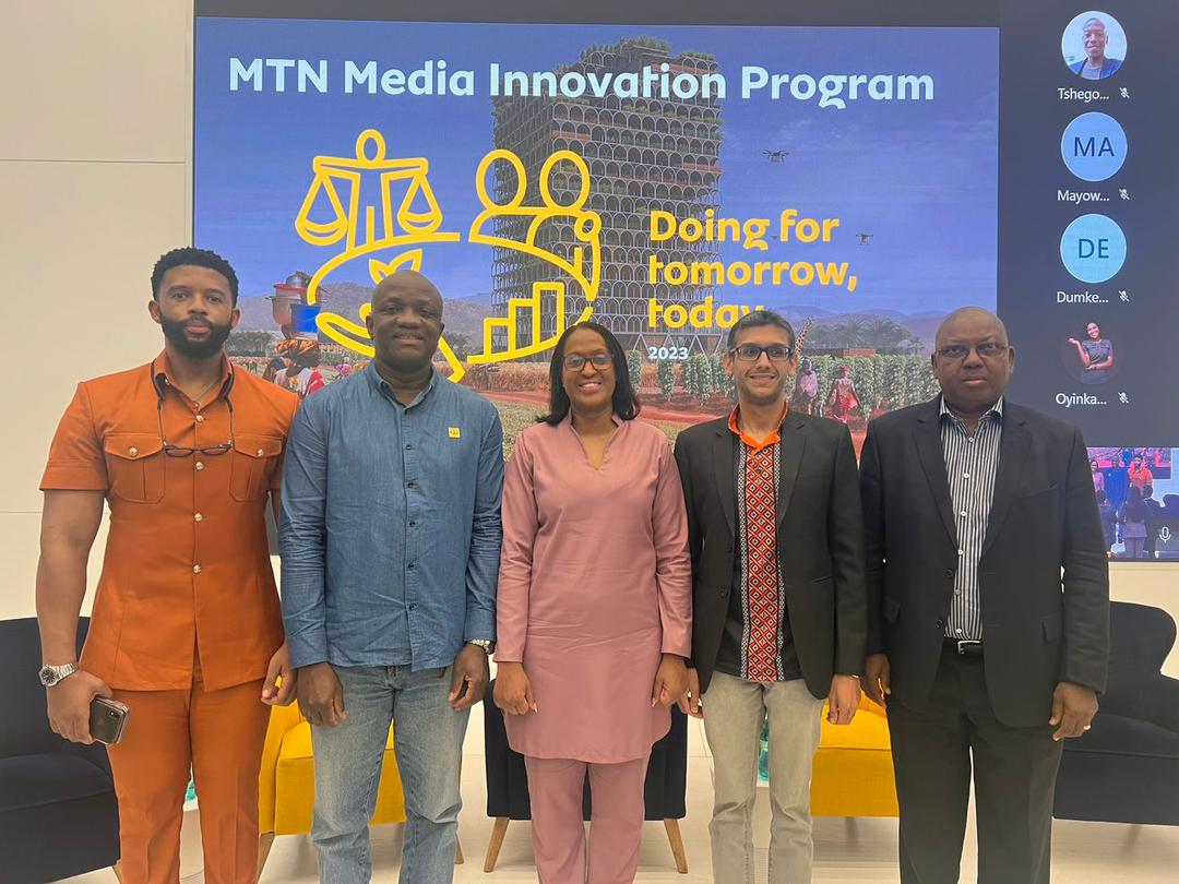 L-R: Dominic Khumalo, Senior Manager, Public Affairs, MTN Group; Funso Aina, Senior Manager, External Relations, MTN Nigeria; Marina Madale, Executive, Sustainability and Shared Value, MTN Group; Atul Dama, General Manager, Strategy and Transformation, MTN Group and Isaac Ogugua Ezechukwu, Director, Professional Education, Pan-Atlantic University during the MTN MIP 2 Fellows visit to MTN Group in Sandton, South Africa on September 21, 2023.