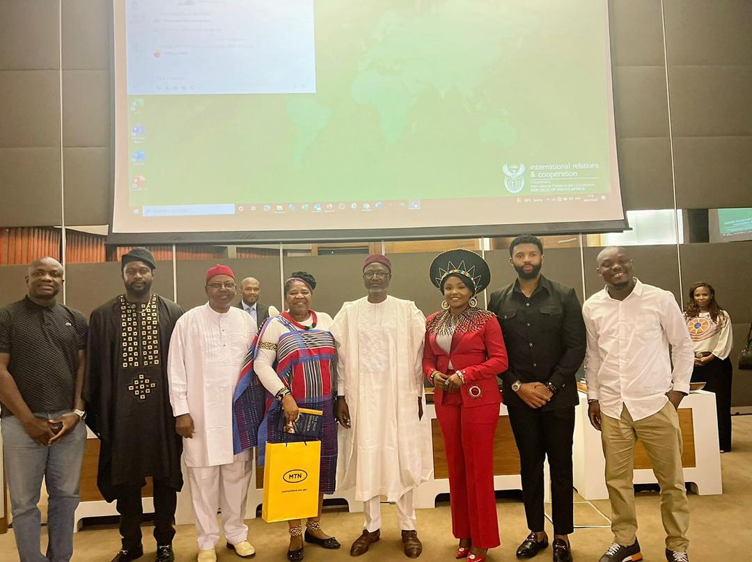 L-R: Dominic Khumalo, Senior Manager, Public Affairs, MTN Group; Lakinbofa Goodluck, PR Manager, MTN Nigeria; Isaac Ogugua Ezechukwu, Director, Professional Education, Pan-Atlantic University; Amb. Haruna Manta, Nigerian High Commissioner to South Africa; Tebogo Seokolo, South Africa’s Ambassador to France and Monaco; Nyameko Goso, Chief Director, West Africa, South African Department of International Relations and Cooperation and Funso Aina, Senior Manager, External Relations, MTN Nigeria during the MTN MIP 2 Fellows visit to the Department of International Relations and Cooperation in Pretoria, South Africa on September 22, 2023.