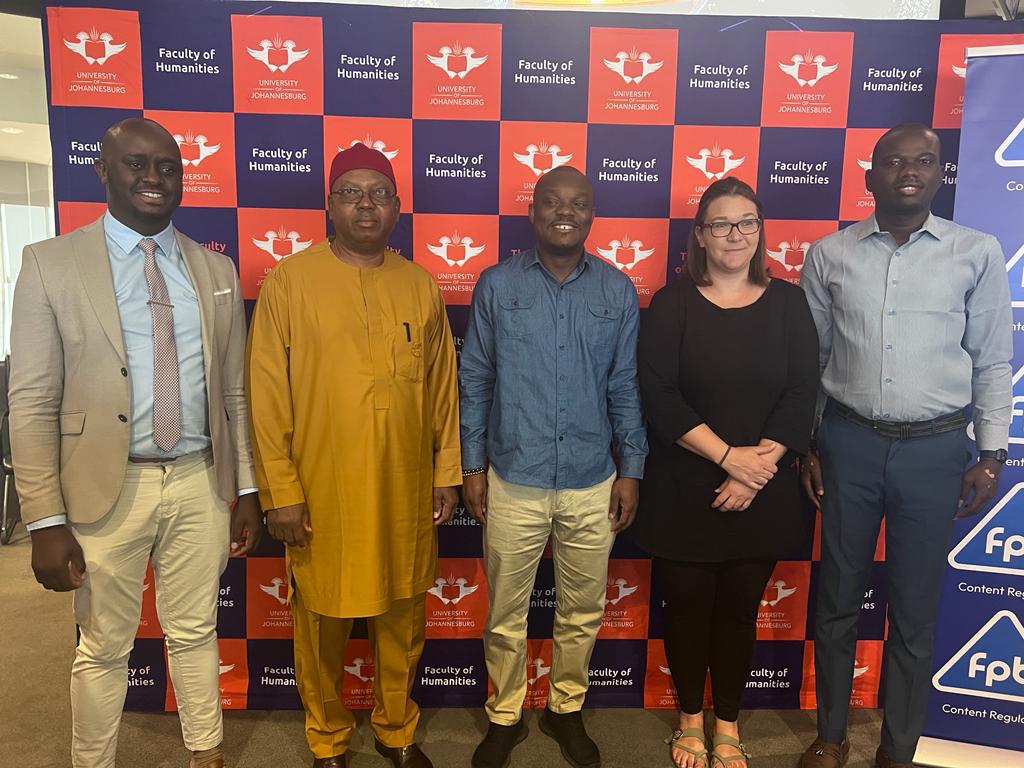 L-R: Chinedu Chidi, President, MTN MIP Cohort 2, Lakinbofa Goodluck, PR Manager, MTN Nigeria; Dr. Prinola Govenden, Senior Lecturer, Department of Communication and Media, University of Johannesburg; Isaac Ogugua Ezechukwu, Director, Professional Education, Pan-Atlantic University and Funso Aina, Senior Manager, External Relations, MTN Nigeria at the University of Johannesburg, South Africa on September 18, 2023.