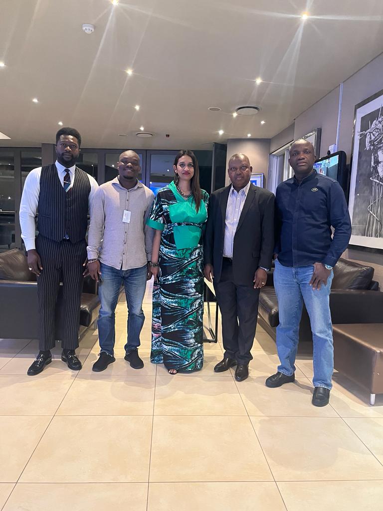 L-R: Funso Aina, Senior Manager, External Relations, MTN Nigeria; Chinedu Chidi, President, MTN MIP Cohort 2; Isaac Ogugua Ezechukwu, Director, Professional Education, Pan-Atlantic University; Mashego Dlamini, Deputy Minister, Department of International Relations and Cooperation (DIRCO); Amb. Haruna Manta, Nigerian High Commissioner to South Africa; Victory Wilson, MTN MIP Fellow; Dominic Khumalo, Senior Manager, Public Affairs, MTN Group and Lakinbofa Goodluck, PR Manager, MTN Nigeria during the MIP Fellows engagement with the Department of International Relations and Cooperation in Pretoria, South Africa on September 22, 2023.