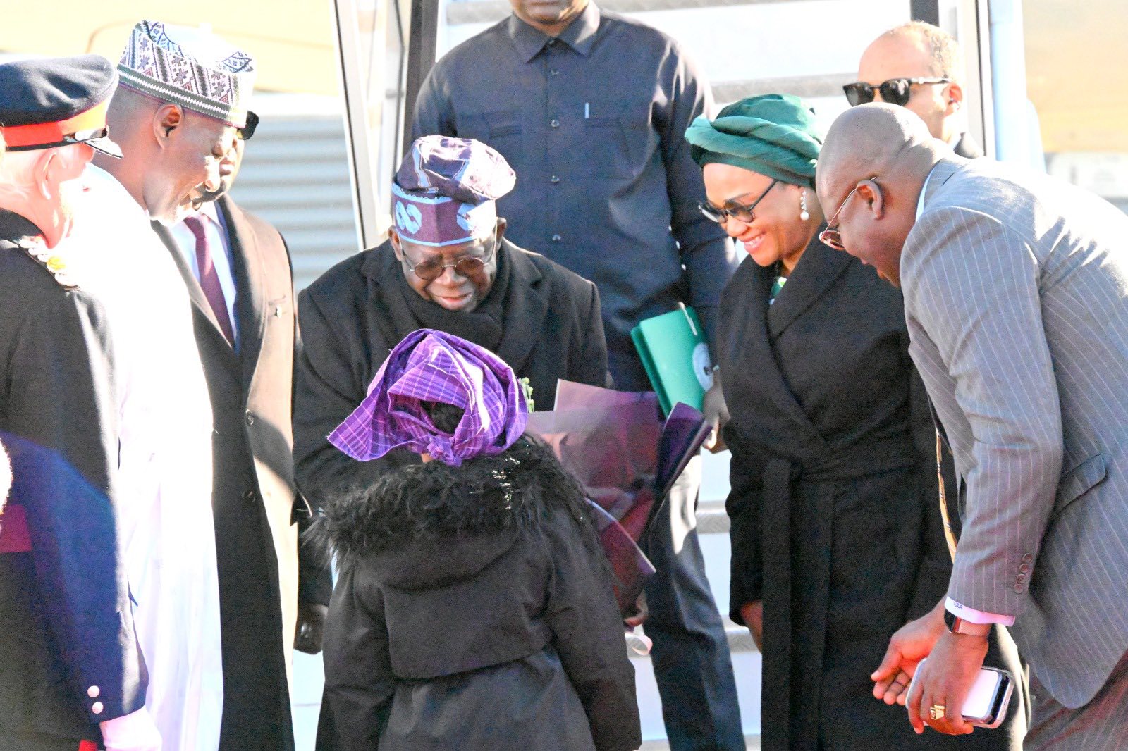 Also on hand to welcome the President to his hotel were some senators, governors and ministers.