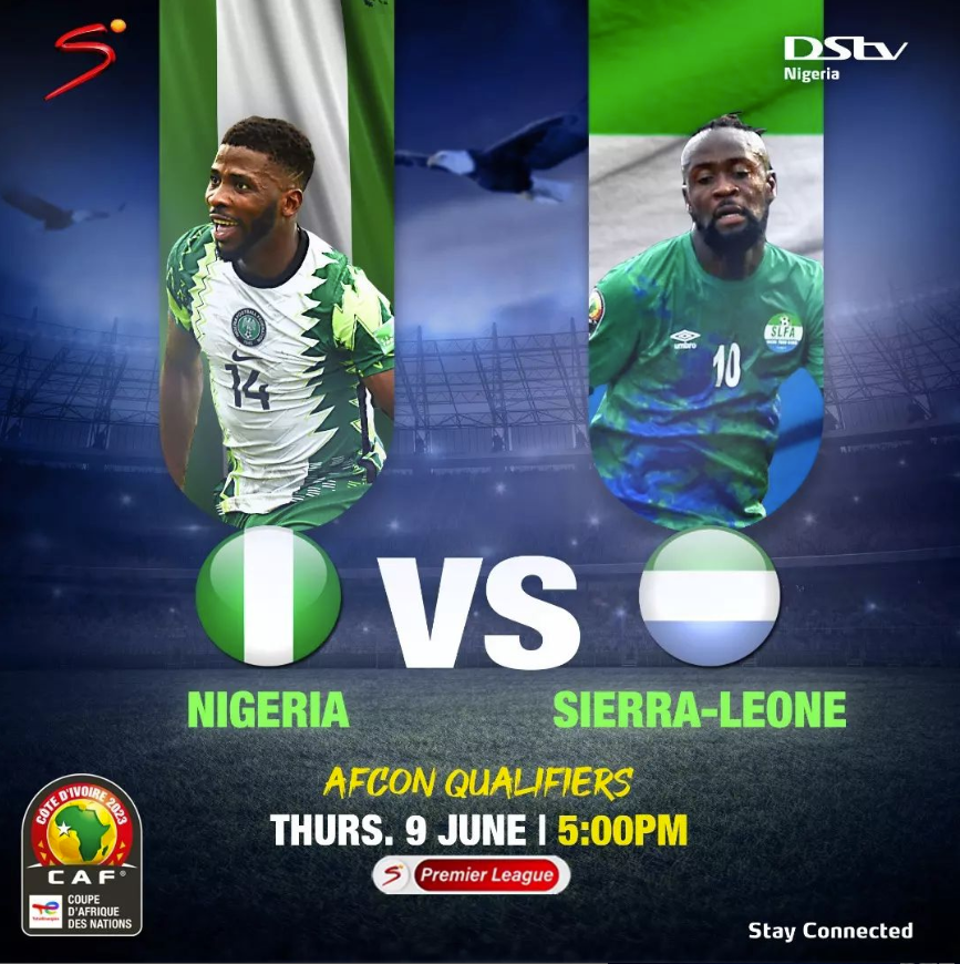 The road to AFCON 2023 begins on Thursday, June 8, 2022, as the Super Eagles of Nigeria kickoff their campaign to qualify for a 19th appearance at the African Cup of Nations. Placed in group A, Nigeria will first battle Sierra Leone at the Moshood Abiola Stadium Abuja an empty stadium, due to the pitch invasion during the World Cup qualifying match against Ghana. The match will, however, air live on SuperSport Premier League (DStv channel 203) at 5 p.m. You can watch on the go with the MyDStv mobile app at no extra cost.