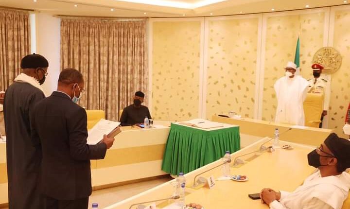 President Buhari Swears In Two Profs As INEC Commissioners