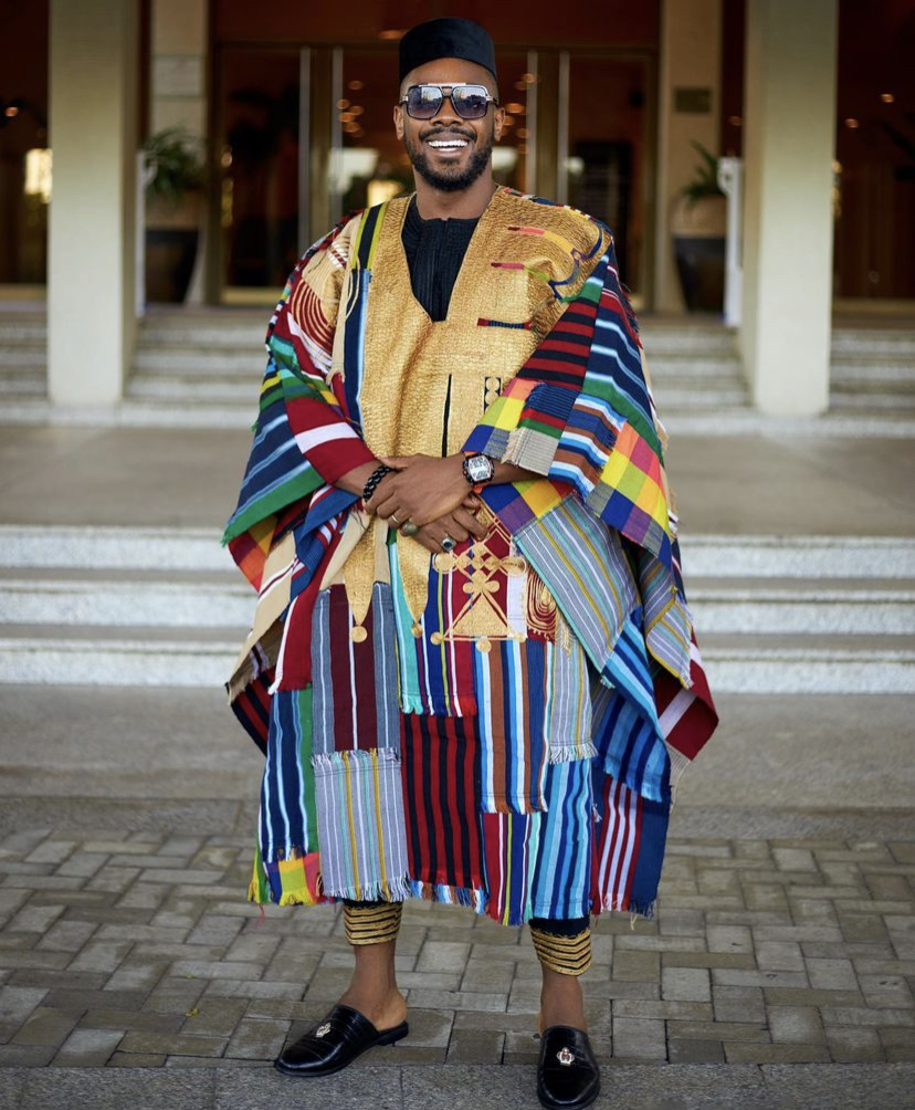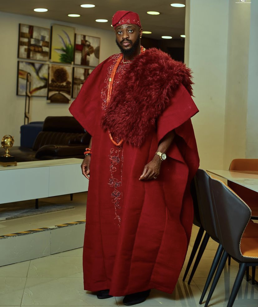 Yemi Cregx, known for his fashion forward styles, stepped onto the red carpet wearing a traditional Yoruba agbada. The agbada was beautifully crafted with a vibrant Aso-oke fabric, showcasing intricate beadwork and bold colors. Completing the look, Yemi accessorized with a matching red fila (Yoruba cap) and faux fur, exuding elegance and cultural pride.
