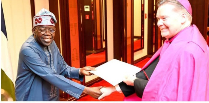 After receiving the Letter of Credence from the Apostolic Nuncio of the Vatican, President Tinubu commended the Catholic Church for its investments in education and interventions to reduce poverty.